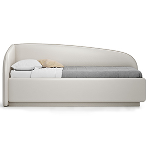 Одна из самых популярных моделей, по форме – это мягкое спальное место, низкий диванчик со спинкой и подлокотниками. Некоторые изготовители укомплектовывают съемными бортиками (детей помладше они уберегут от падения), устанавливают на ножки и подиум.