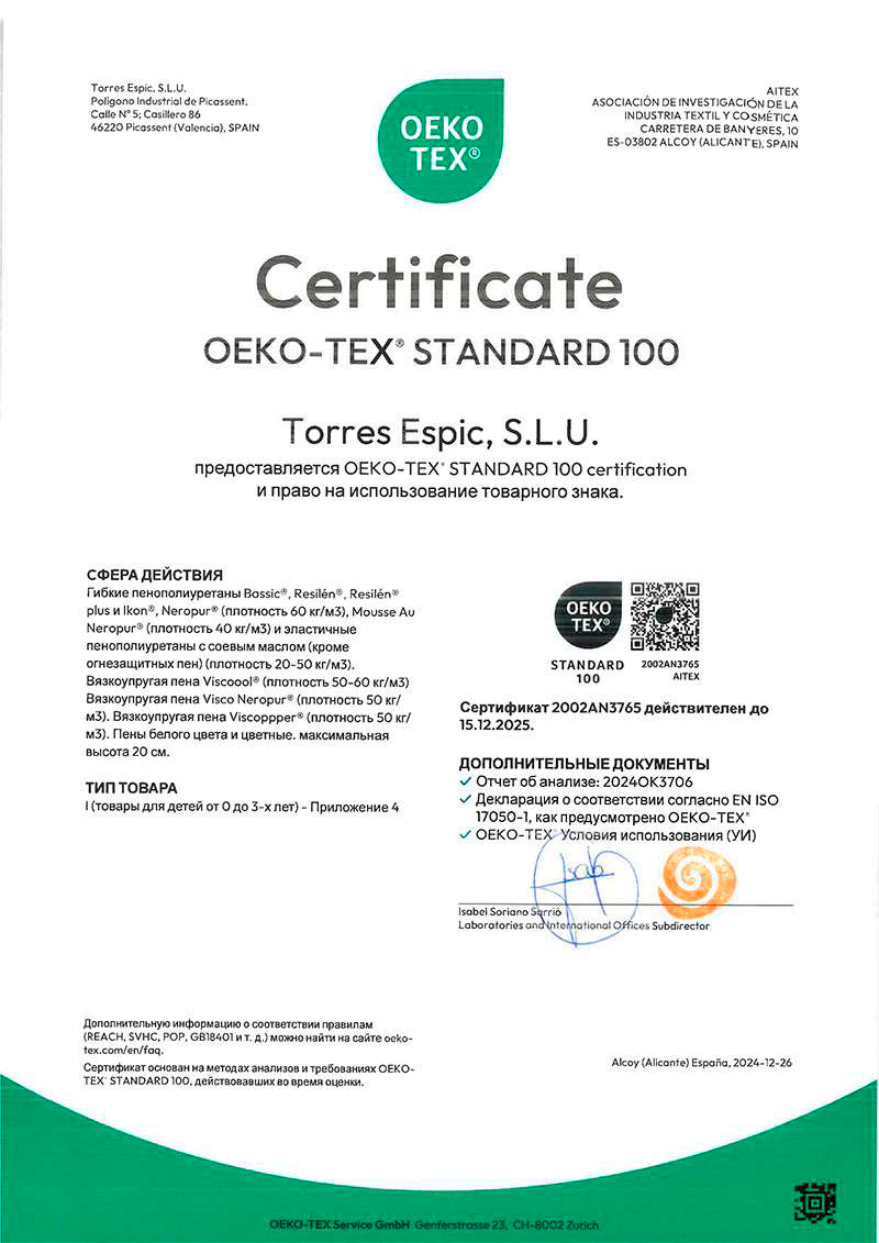 - Продукция имеет сертификат соответствия, стандарт безопасности oeko-tex®100